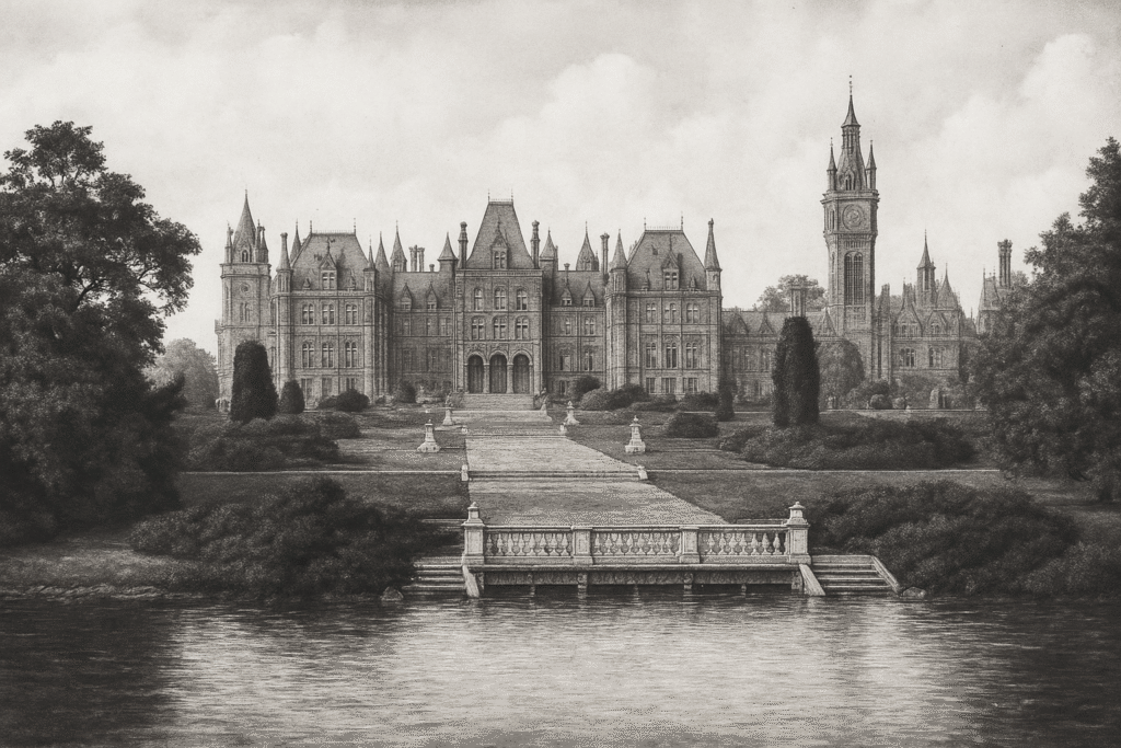 Evocative the illustrated book ‘England’s Lost Houses’ by Giles Worsley, several important stately homes (Wilton Park and Eaton Hall) feature in the novels as they once were in their prime, before their demolition in the 1960s.